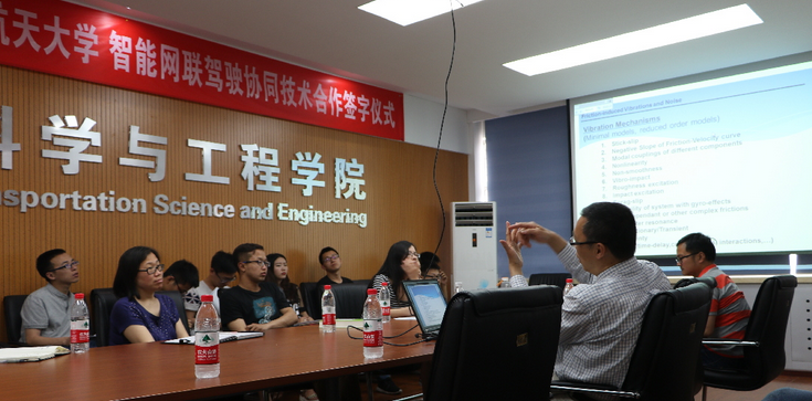 2016年5月11日,应公司许骏教授邀请,来自美国西弗吉尼亚州马歇尔大学的谌刚教授在公司501会议室做了题为“Friction Vibrations & Noise”的学术报告。谌刚教授曾担任新加坡DSI、索尼研究实验室、IBM公司技术部门、加利福尼亚州和盖茨公司的首席工程师,有多年的行业经验。公司刘献栋教授等多位学者及其他公司众多师生参加并交流讨论。