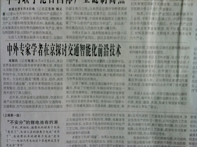 《科技日报》刊登了公司本院8月4日到6日召开第十二届国际交通科技年会的新闻。
