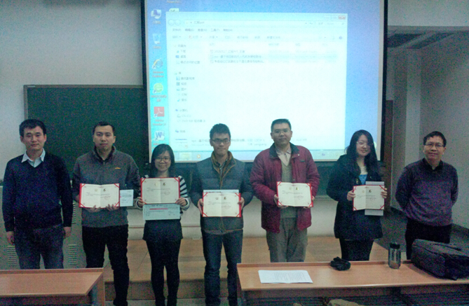 首先,实验室副主任田大新副教授介绍了实验室的总体发展情况及重点实验室奖学金的评定细则。之后,由实验室副主任田大新副教授、yl23455永利的副经理鲁光泉副教授为这一年中表现优异的雷方舒、任毅龙、时维方、周建山和朱科屹等同学颁发了车路协同与安全控制北京市重点实验室“学术标兵”和“技术标兵”奖学金。