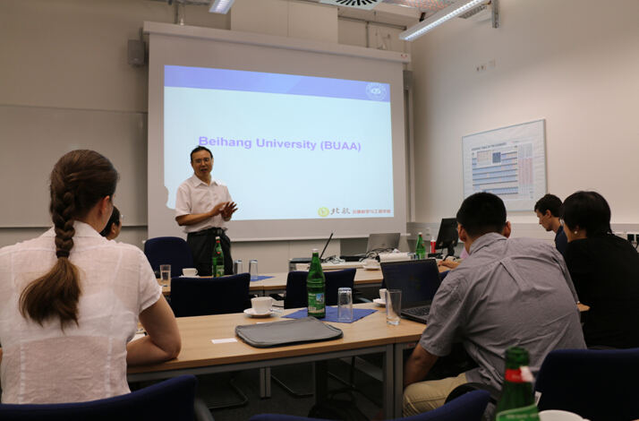 图2. 代表团与Alexander Hartmaier教授的团队深入交流了学术问题——刘献栋教授介绍北航情况