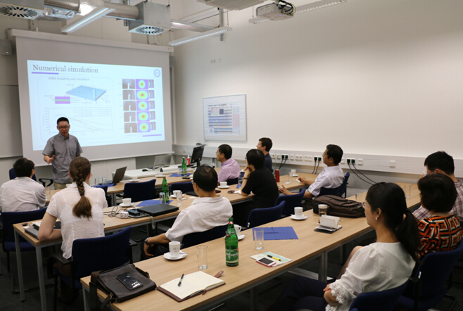 代表团还与Alexander Hartmaier教授的团队深入交流了学术问题,双方代表结合自己的研究内容,组织了一次学术研讨会,分别做了各自研究内容的学术报告,并进行了学术交流。我方刘献栋教授介绍了汽车系的团队建设情况,许骏教授做了有关汽车车身与动力部件的碰撞安全的学术报告,对方Anxin Ma博士、Rebecca Janisch博士、Martin Boeff博士也做了相关学术报告。我们的研究与Alexander Hartmaier教授团队的研究非常相近,这次学术交流为将来进一步的合作研究奠定了基础。