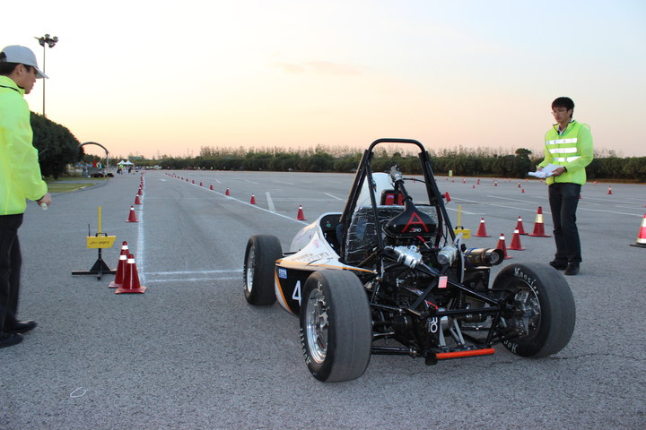 在静态赛中,经过车队队员们精心准备,设计报告和成本报告答辩的表现均得到了裁判的认可,营销报告也取得了第12名的良好成绩,为而后的比赛增加了信心。经过了层层车检,赛车参加了直线加速比赛,但是由于时间问题,遗憾的与八字绕环比赛失之交臂。第二天,赛车以稳定的发挥参加了高速避障和耐久赛。最终耐久赛排名第11,总成绩排名第13的历史最好成绩。