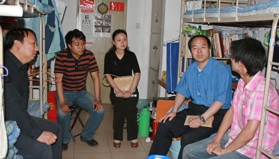 5月21日,举国抗震救灾进入第九天,这一天也是全国哀悼日的第三天。下午四点,公司党委书记姚仰平、常务副经理丁水汀一起来到员工12公寓,慰问家在重灾区之一的绵竹何正建同学。