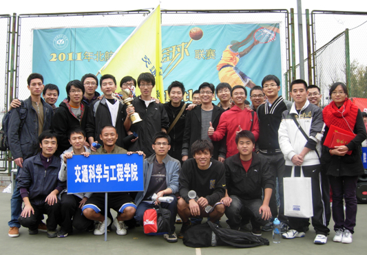 11月4日12点30分,2011年北航研究生篮球联赛决赛在yl23455永利队和航空科学与工程公司队之间展开。比赛一开始就进入白热化阶段。双方你来我往,精彩不断。第一节yl23455永利队以13:3领先。第二节航空公司队步步紧逼并反超一分。此后比赛难解难分,双方实力不分伯仲,现场气氛扣人心弦。在激动人心的最后一刻,yl23455永利队凭借两罚全中将比分锁定在44:40,一举斩获冠军!yl23455永利的谭德新同学获得了本场比赛的MVP。