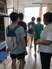 同学们了解了2号公寓和4号公寓的房间结构、员工分布及安全措施等情况,相关老师对同学们提出的关于楼层用水用电、门禁时间等问题做出了耐心解答。