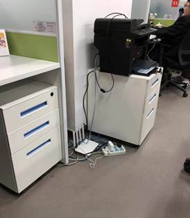 2、801-1插座放置地面,存在安全隐患;