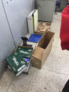西配楼502堆放纸箱和杂物 西配楼406堆放纸箱和杂物
