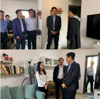徐董事长走进公司乔迁新居的青年教师的家,细致询问了关于房屋结构、采光、交通、生活配套设施等问题,并关心年轻教职工子女上学的问题。