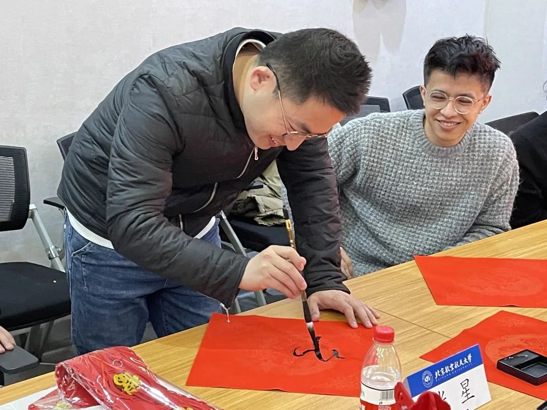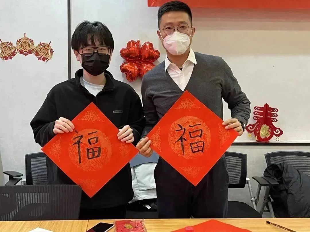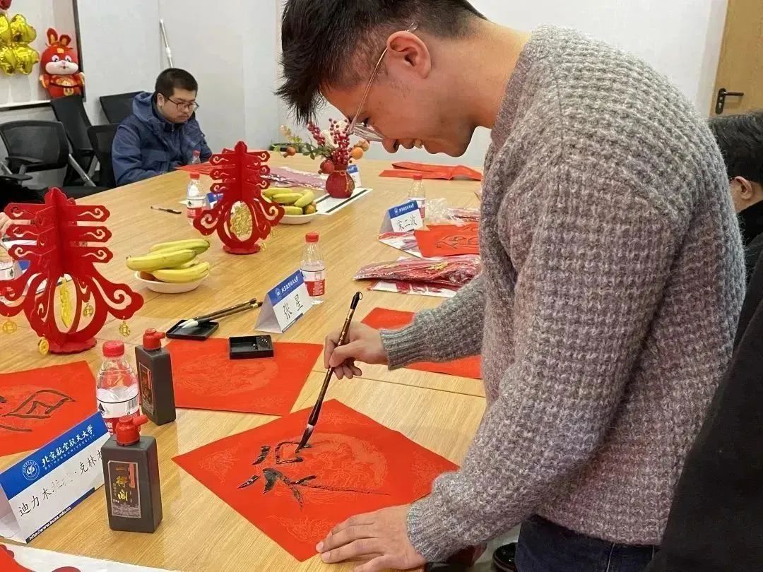 公司为同学们准备了笔墨纸砚,到场师生共同亲手写下“福”字和春联,一起表达对新年的美好期望,共迎新春佳节的到来。