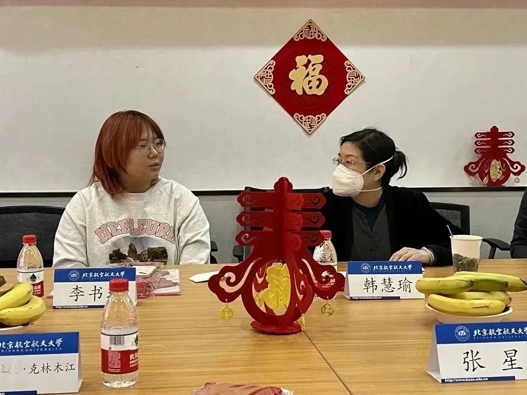 在新春慰问座谈会中,韩慧瑜书记细致询问同学们寒假期间在校生活起居、学习科研情况,详细了解大家的困难和需求,并叮嘱同学们保重身体,做好个人防护,利用假期时间调整好身心状态,多读书、勤思考,合理规划新一年的学业科研安排,同时劳逸结合,利用好首都丰富的文化资源,涵养个人精神文化底蕴,在校度过一个温馨、充实、有意义的假期。