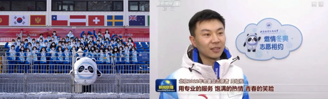 他作为志愿者代表接受《新闻联播》采访,展现北航学子的青春风采与自信热情。冬奥盛会结束后,周绍栋在人民大会堂参加总结表彰大会,现场聆听习近平总书记重要讲话,备受鼓舞与感召。