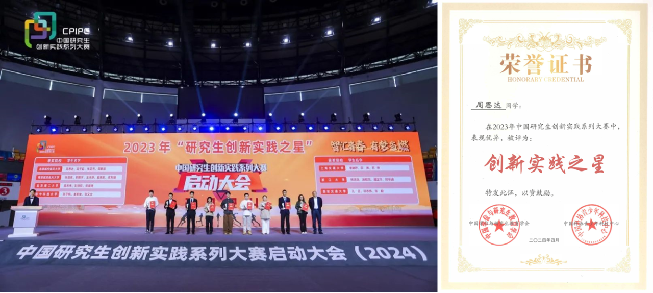 勇攀高峰,力夺科创冠军。在课余时间积极参加科技创新大赛,并积极分享相关经验、指导本科生和研究生参与全国性竞赛。获第九届中国研究生智慧城市技术与创意设计大赛冠军、第九届中国研究生未来飞行器创新大赛季军、中国汽车工程学会动力电池集成与管理挑战赛一等奖、2023年互联网+北京赛区二等奖、2023年数字汽车大赛一等奖等,获评中国研究生创新实践系列大赛最高荣誉“创新实践之星”。