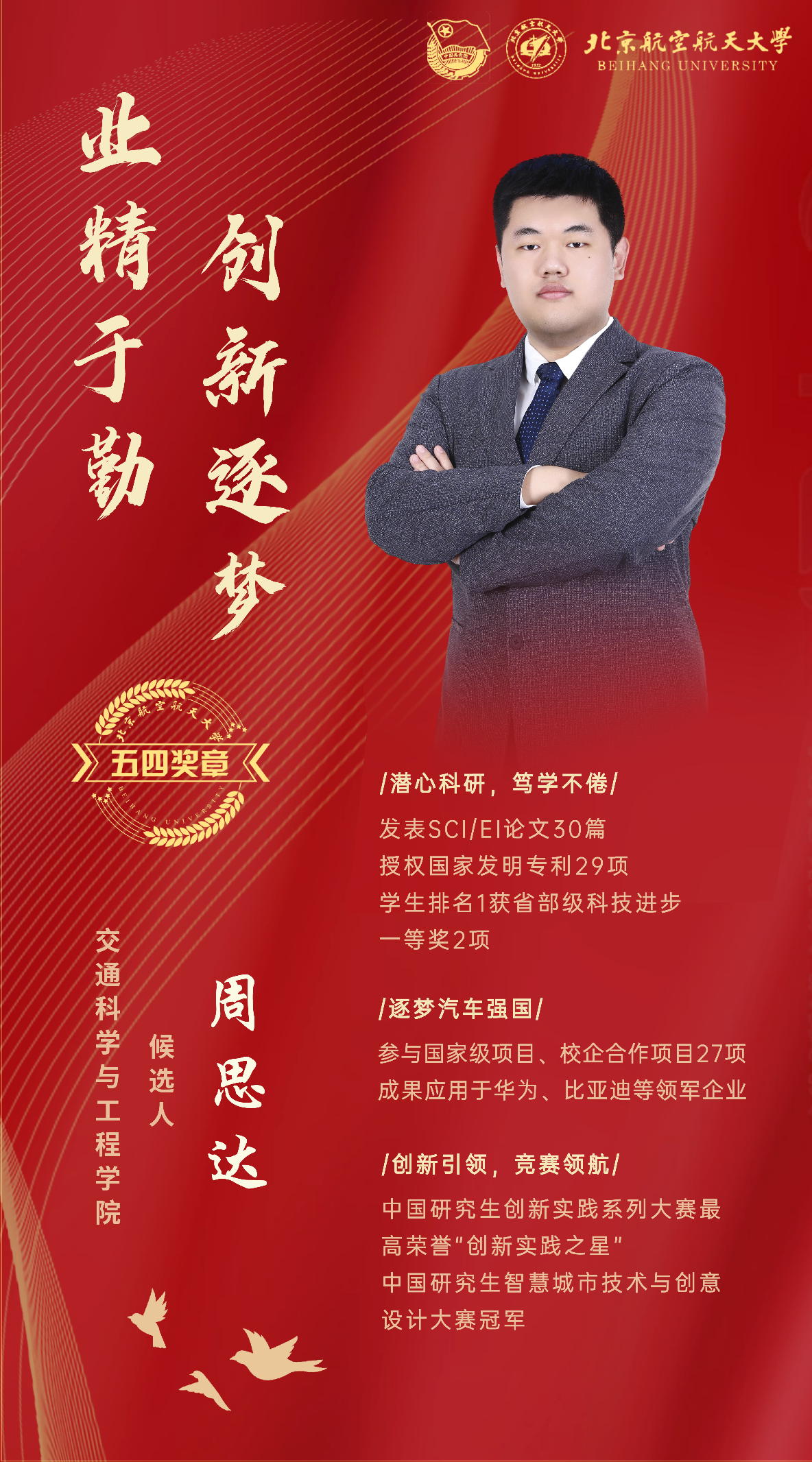 获奖感言:在北航的四年无比充实难忘。在这条路上感谢公司的支持与培养,感谢每一位指导、陪伴我的师长与伙伴,在共同进步中不断地学习探索并找到我的兴趣与热爱,成为一个能够有热发光的人。也想借着这个机会鼓励大家勇敢尝试,在接触尝试中不断接近摸索自己的方向,我们一起努力,争做“立大志、明大德、成大才、担大任”的时代新人!