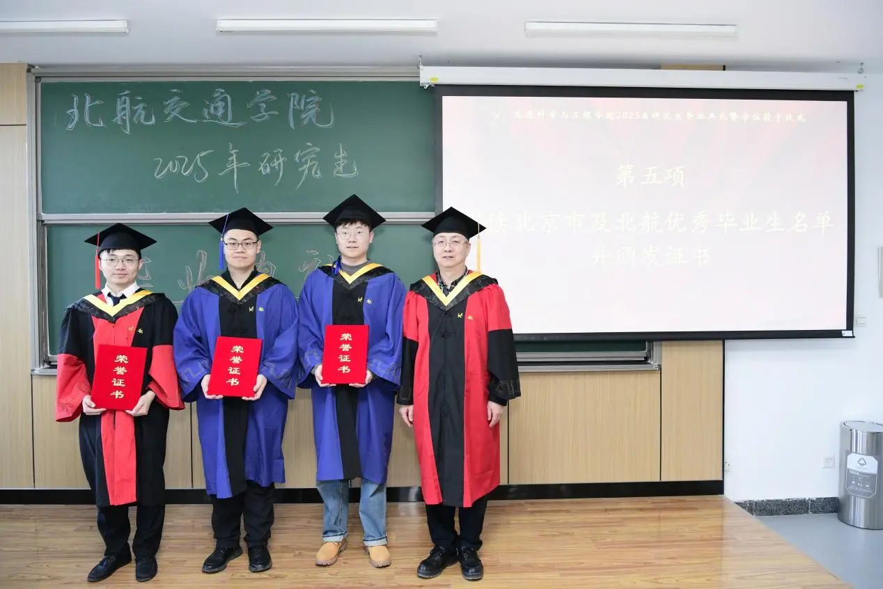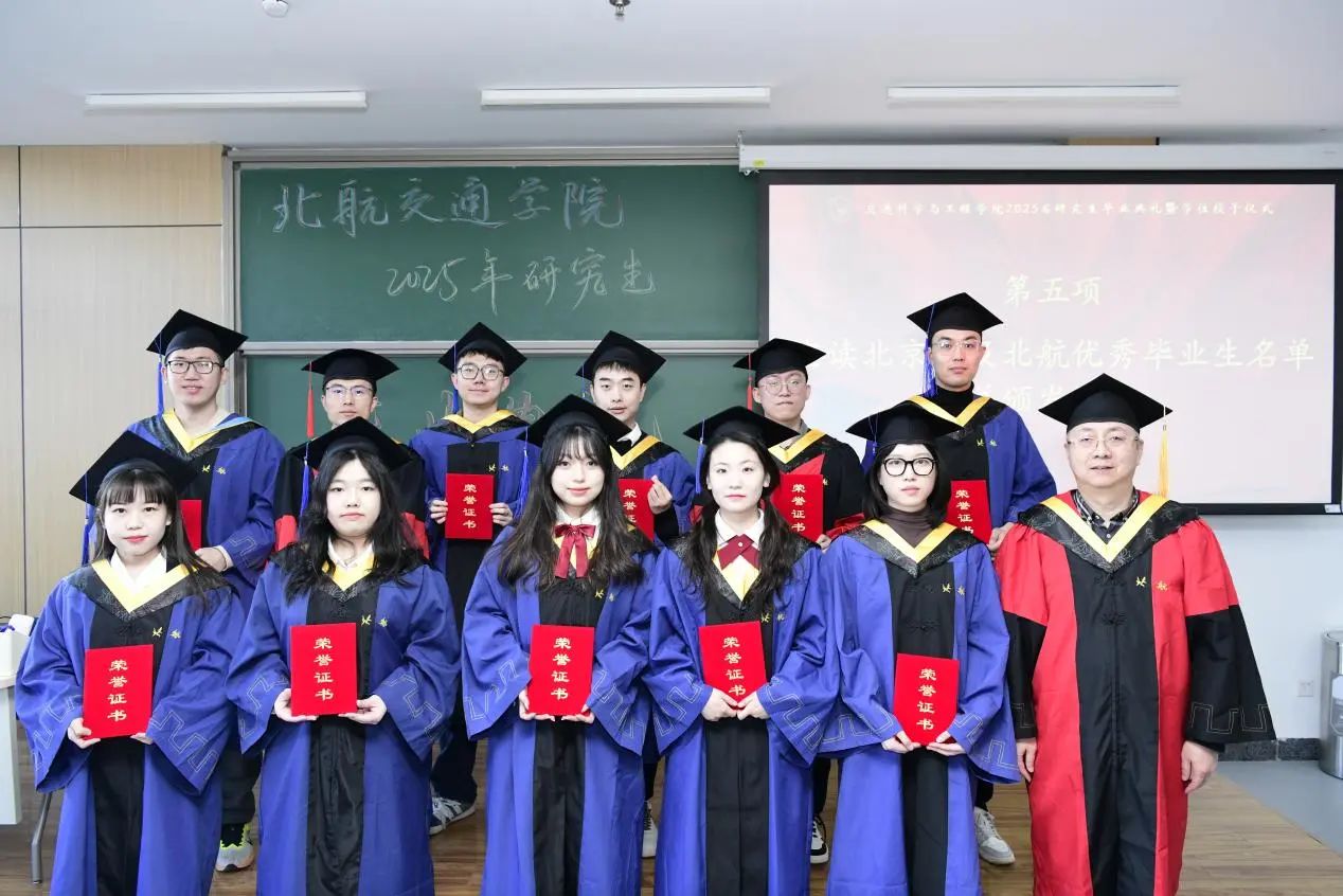 杨世春宣读2025届春季北京市及北航优秀毕业生名单并为获奖代表颁发证书。