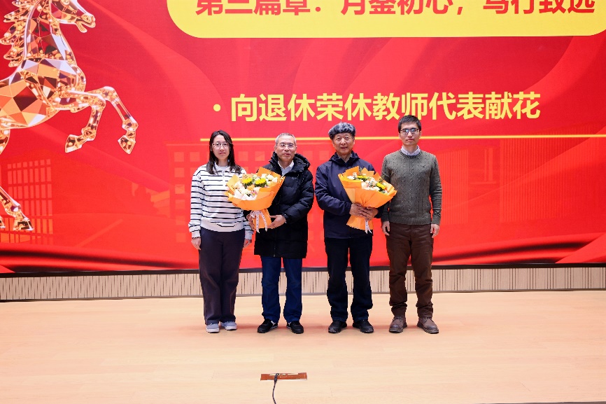 大会举行了庄重而温馨的荣休与新进教师交接仪式。新进教师代表满怀敬意地向退休荣休教师代表高峰、李兴虎献花并鞠躬致意,这不仅是对前辈们数十载躬耕教坛、无私奉献的最高礼赞,更是公司尊师重道、薪火相传优良传统的生动写照。