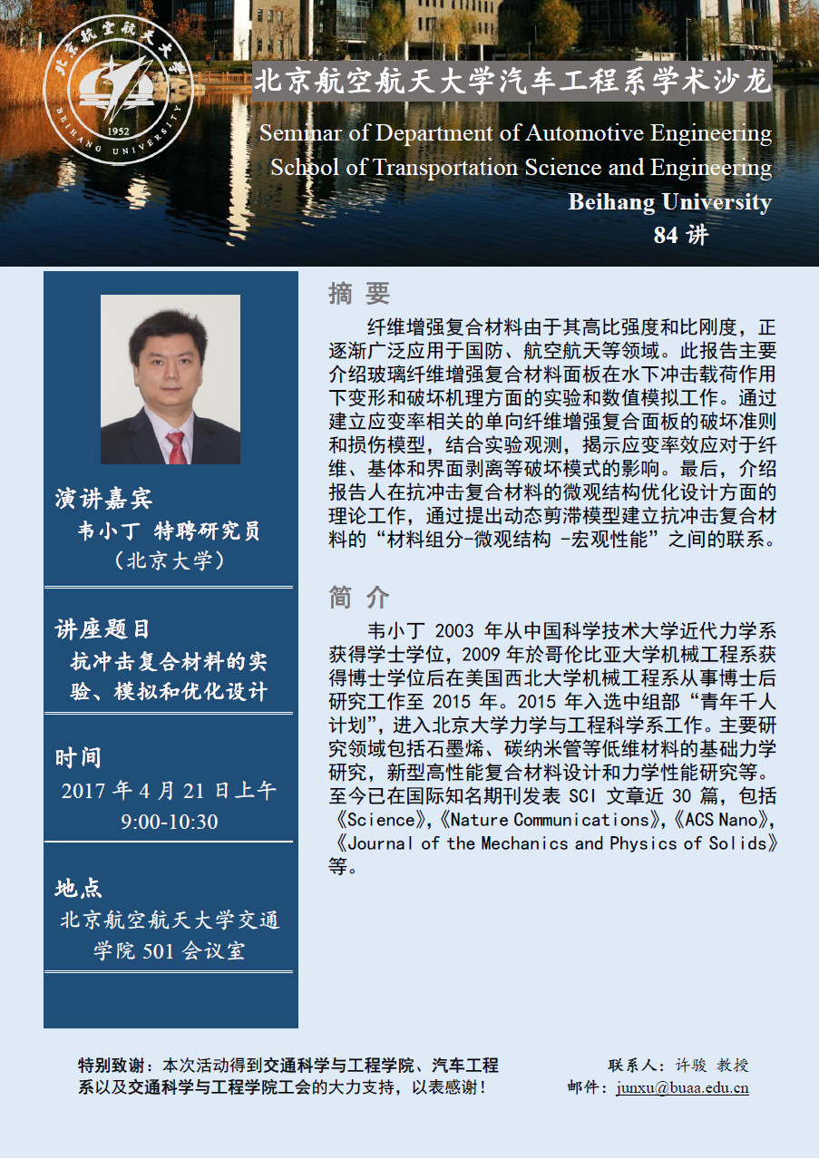 汽车工程系学术沙龙第84讲预告——抗冲击复合材料的实验、模拟和优化设计