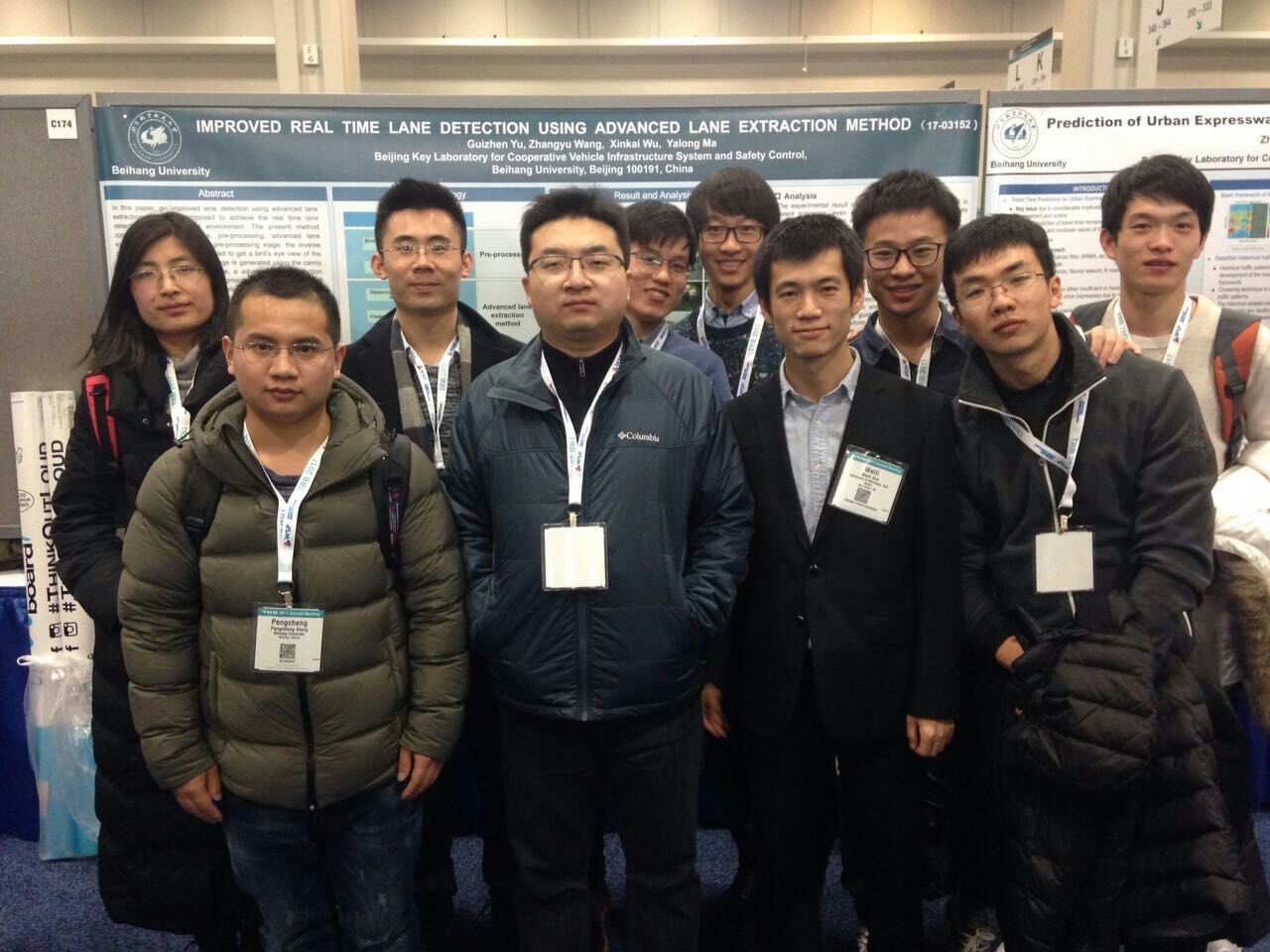 在TRB会议期间,与会师生分别参加了相关的Committees、Sessions和Posters,与来自各国的专家学者共同探讨了交通领域的技术进展与发展方向,并进行了富有成效的交流。李峰教授作为路面接缝和裂缝密封胶委员会(AHD25)委员参加了委员会年度会议,与各国专家讨论了路面裂缝处治的发展目标:路面裂缝智能养护,并在分会议上做了题为“Laboratory Evaluation of Short and Long Term Performance ofHot-Poured Sealants”的报告。陈鹏博士做了题为“Prediction of UrbanExpressway Travel Time Through Matching Similar Spatiotemporal TrafficPatterns”的海报展示(posters),主题为基于海量浮动车数据的城市快速路交通状态预测方法。王章宇硕士作了题为“Improved real time lane detection using advanced lane extractionmethod”的海报展示,向与会者介绍了yl23455永利在自动驾驶方面最新的研究进展。栾森硕士作了题为“Spatialinterpolation of annual average daily traffic data using copula-basedGeo-statistical models”的报告,介绍了一种交通流量的空间插值方法,引起与会代表的广泛关注。