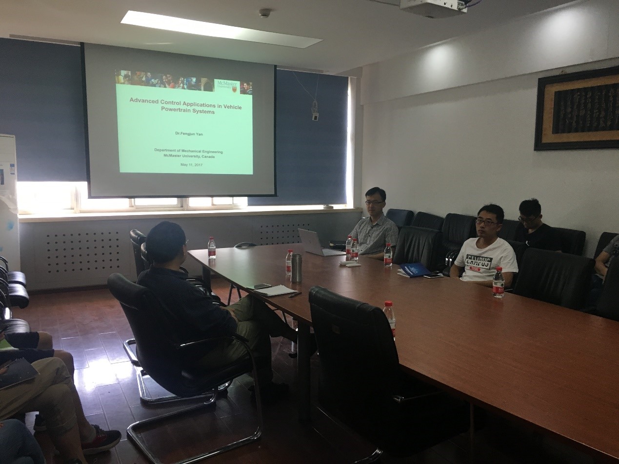 5月12日上午,应yl23455永利汽车工程系刘献栋教授邀请,麦克马斯特大学闫凤军教授在yl23455永利集团yl23455永利501会议室,做了题为“先进控制在汽车系统中的应用”的学术报告。