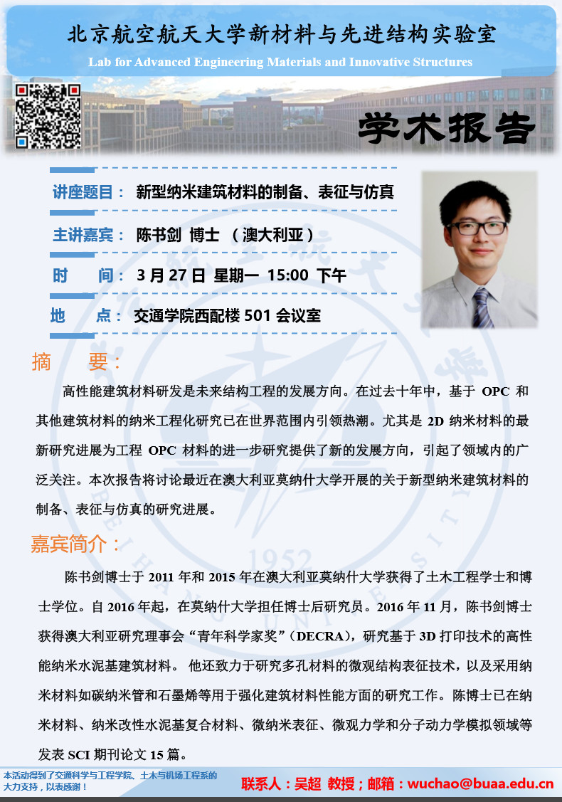 土木与机场工程系学术报告—新型纳米建筑材料的制备、表征与仿真