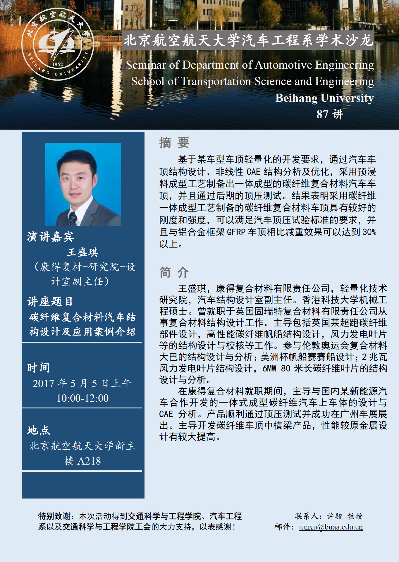 汽车工程系学术沙龙第87讲预告——碳纤维复合材料汽车结构设计及应用案例介绍