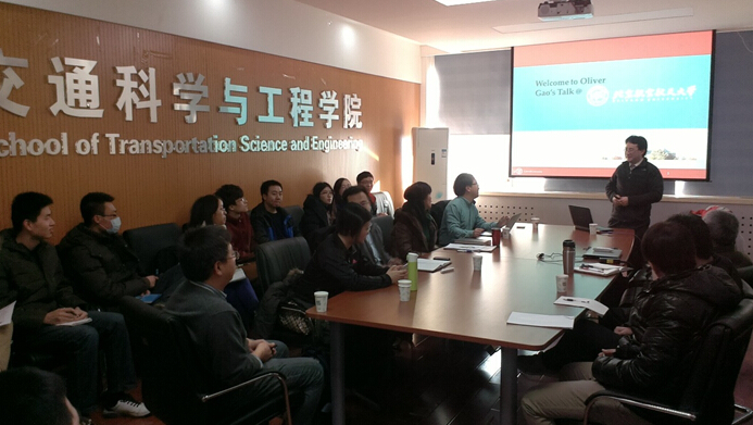 2015年1月2日下午,美国康奈尔大学的H. Oliver Gao博士应邀在公司会议室做了题为“From Transportation Planning/Management to Air Pollution and Public Health—Are We Doing the Right Thing, and Doing it Right?”的学术报告,公司及公司经管公司、北京交通大学交通运输公司的近40位教师和博士生、硕士生参加并交流讨论。