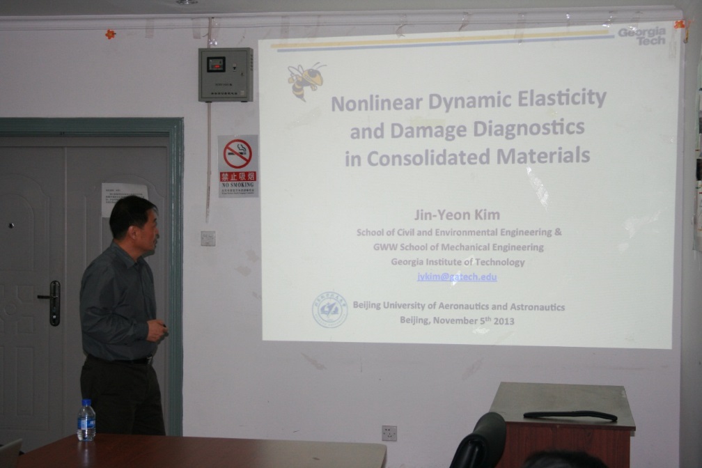 11月6日下午,应yl23455永利陈军副教授邀请,佐治亚理工公司Jin-Yeon Kim教授来公司交流访问并做了题为”土木工程材料非线性动力特性及其无损检测技术”的学术报告。北京大学工公司励争教授和课题组员工,以及yl23455永利和机械公司部分研究生和本科生参加了报告会。