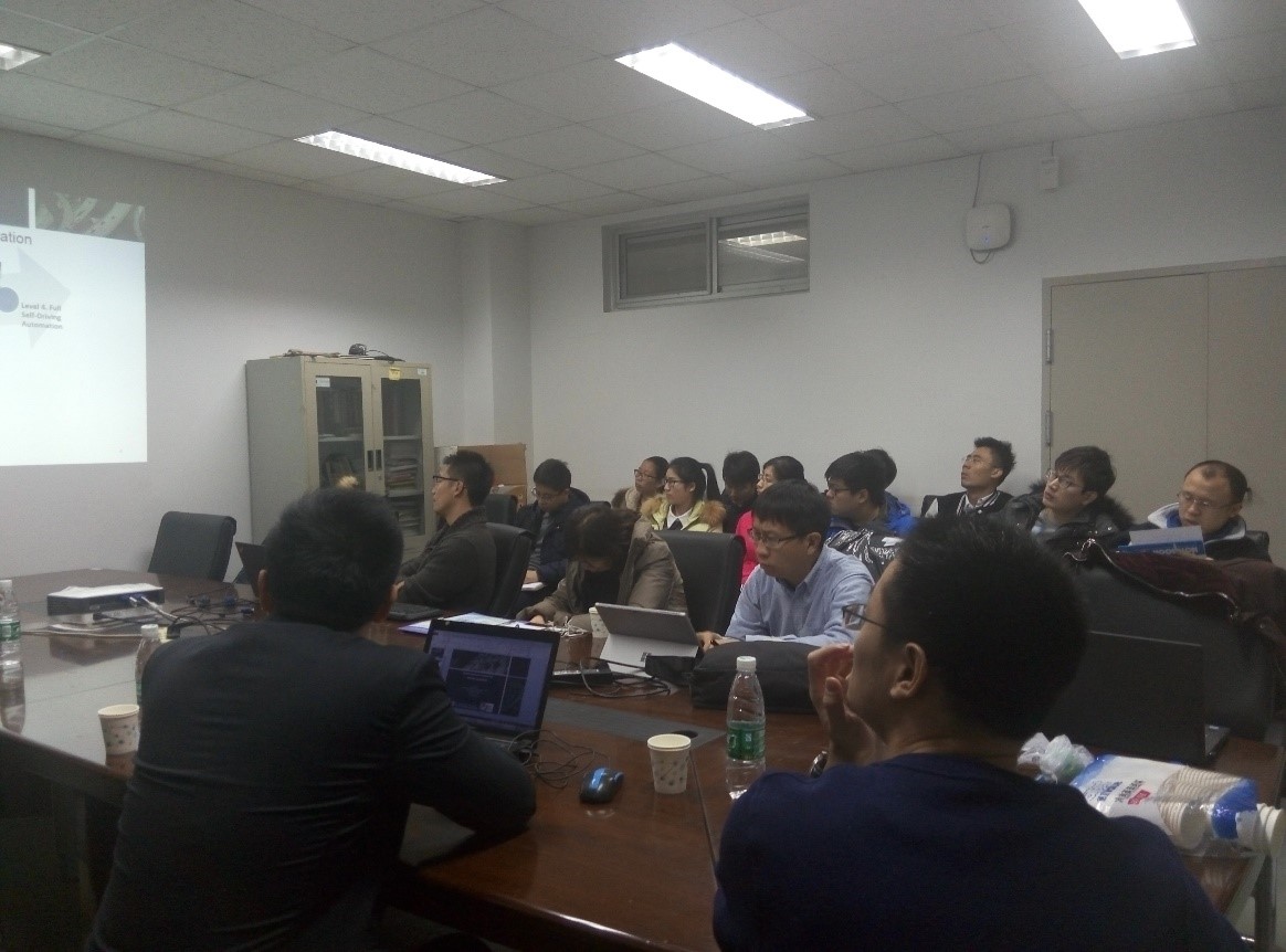 2016年11月30日上午在yl23455永利东404会议室,应yl23455永利余贵珍副教授邀请,美国交通运输院研究员胡笳教授为公司师生做了题为“Opportunitieswith Connectivity: Vehicular Applications”的主题演讲,分析了在车联网的背景下,介绍一系列绿色驾驶技术。