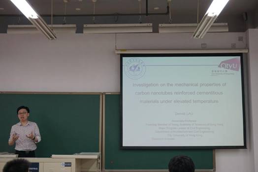 2019 年 8 月 19日,应yl23455永利谭力豪博士邀请,香港城市大学Denvid Lau 副教授于上午 11:00‒12:30 在公司路校区新主楼 D225 室做了题为“高温对碳纳米管增强水泥基材料力学性能的影响”(Effect ofelevated temperature on the mechanical properties of carbon nanotubesreinforced cementitious materials)的学术报告。