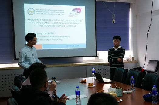 2019年1月2日,应yl23455永利谭力豪博士邀请,香港城市大学孙李刚博士于下午 3:30‒5:00 在公司路yl23455永利西 501 会议室做了题为“基于原子尺度模拟研究先进纳米结构金属材料的力学性能和变形机理”(Atomisticstudies on the mechanical properties and deformation mechanisms of advancednanostructured metallic materials)的学术报告。