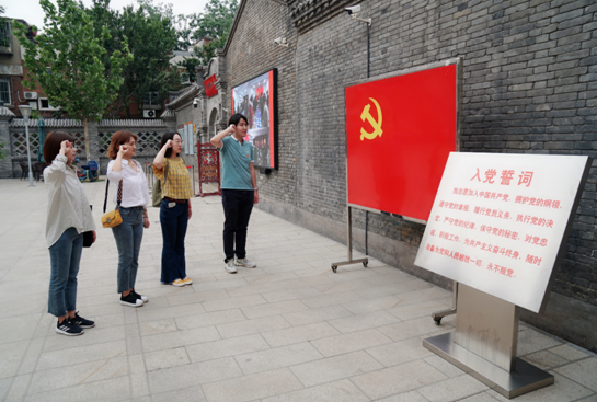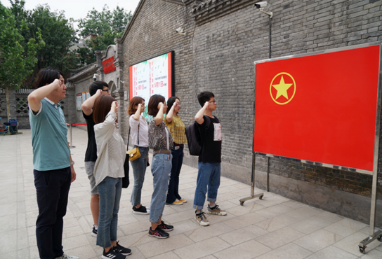 观馆结束后,党员同学在支书带领下面向党旗整齐队列,举起右拳高声重温入党誓词,团员同学也再次面向团旗重温入团誓词。