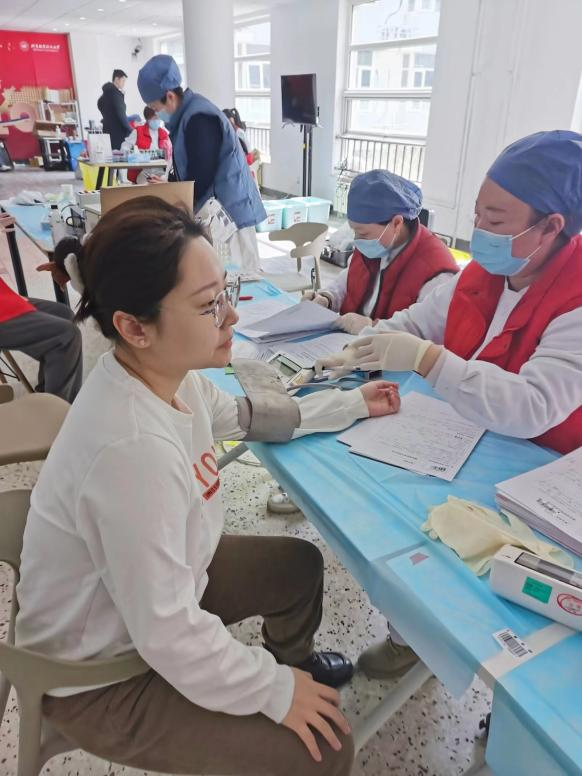 3月19日上午,支部党员和积极分子们在医务人员和志愿者的指导下,逐一完成了填表、身体检查、抽血检验等相关手续。大家依据自己的个人身体状况选择献血量后有序开始静脉采血。