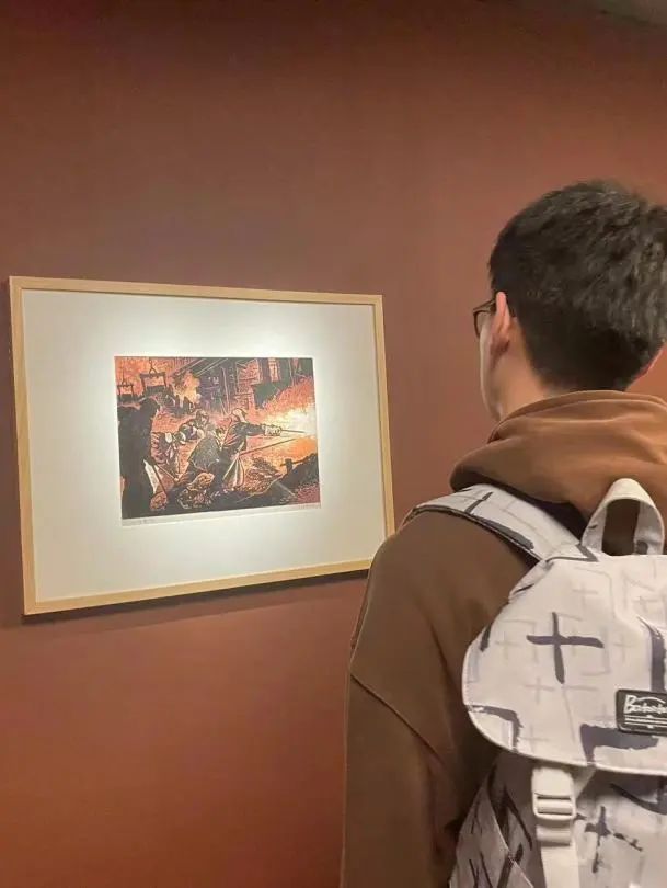 同志们参观劳动者主题的艺术画作