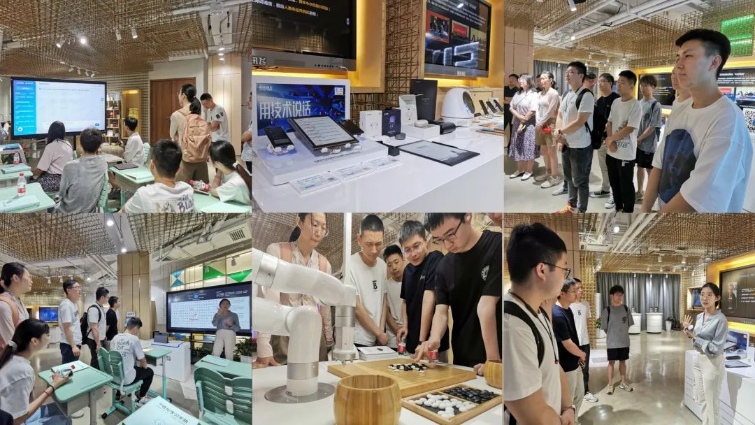 随后,大家参观了工智能体验中心,展厅分为“能听会说”和“理解思考”两部分。在展厅讲解员的引导下,同学们充分了解了科大讯飞在语音识别和人工智能领域的创新成就,领略了语音识别在政企、法律、医疗、教育、内容生成等多领域的业务赋能,同时,也通过与人工智能机器人开展“五子棋”比拼感受当前技术的高速发展。