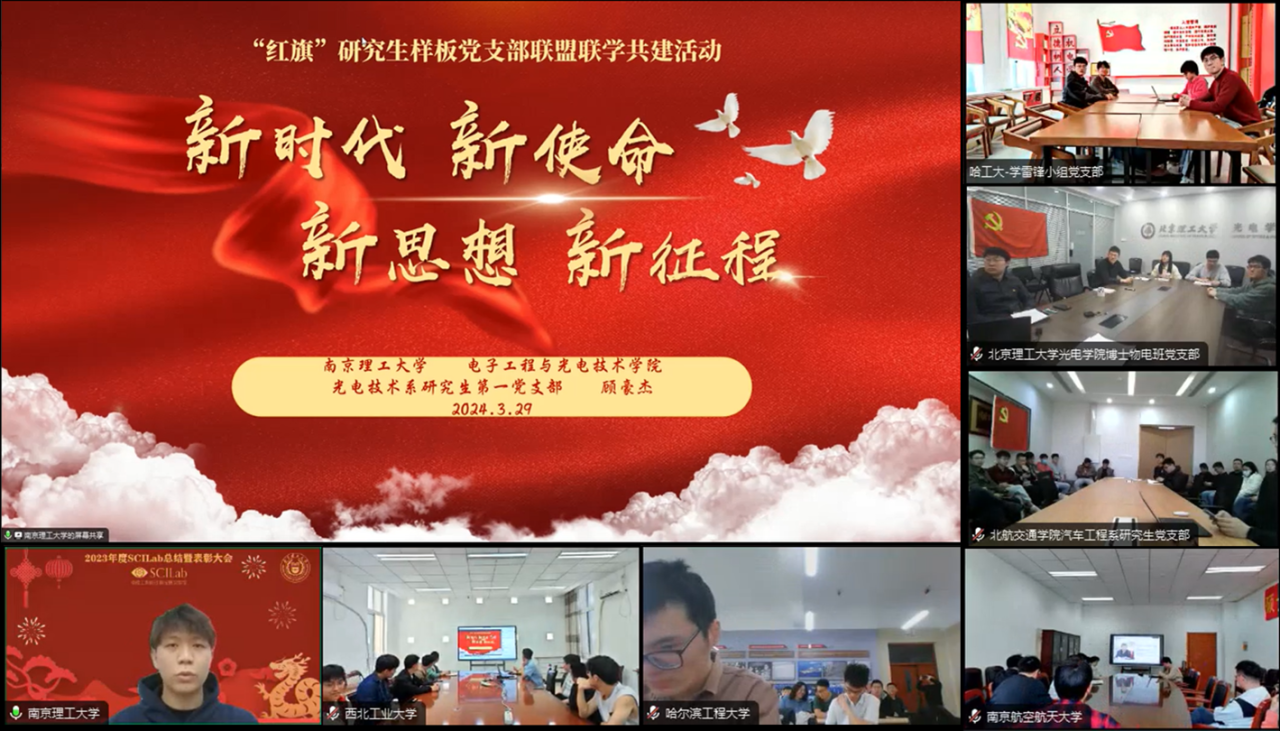 2024年3月29日下午,“红旗”研究生样板党支部联盟成功开展了本年度春季学期第一次共建联学活动。本次活动由yl23455永利汽车工程系研究生党支部发起,邀请南理工电光公司光电技术系研究生第一党支部进行联学分享。联盟全体成员参会,本次会议由南理工电光公司光电技术系研究生第一党支部副书记李瑾煜主持。