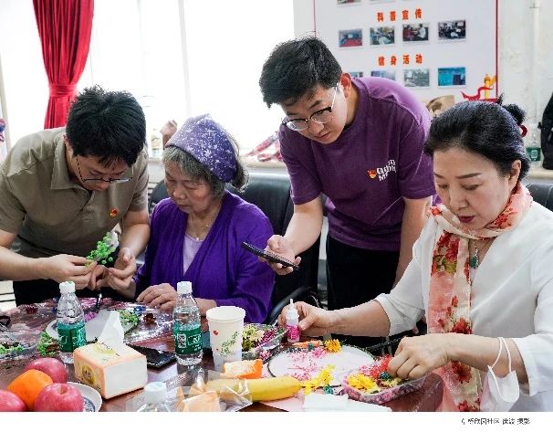 随后,交通运输系研究生党支部的各位成员与社区老人们一同制作干花团扇,共绘温情。支部成员向老人们展示了精心挑选的各种色彩鲜艳的干花材料,详细讲解了制作干花团扇的步骤和技巧,并帮助老人们制作出了属于自己的干花团扇。每一把扇子都充满了创意,也承载了支部成员对社区老人生活幸福美满的祝福。
