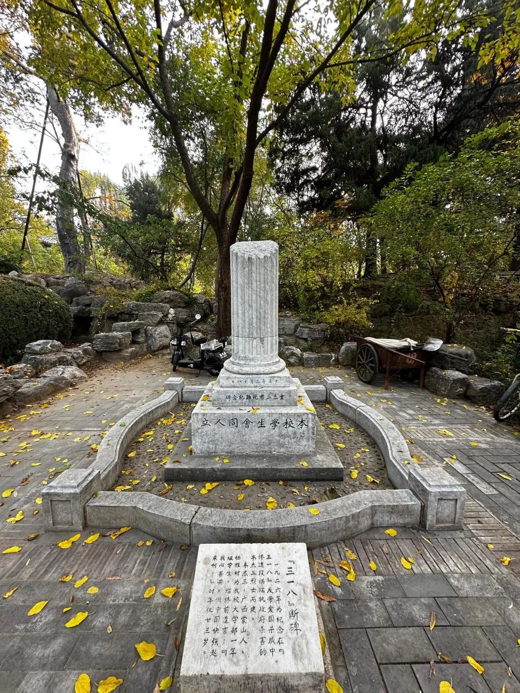一根特意从圆明园移来的大理石断柱,结合志愿者的讲解,我们仿佛看到了在反抗帝国主义侵略与反动派政府的游行示威中,冲在最前列的年仅23岁的韦杰三不幸遇到埋伏射击,腹部连中四弹,终因伤势过重于3月21日壮烈牺牲。柱上镌刻的烈士临终遗言:“我心甚安,但中国快强起来呀!”此时此刻的我们,站在树立在“水木清华”北山之阴的校河边,身边的游客熙熙攘攘,真想让先烈们看看现今我们强大的祖国!