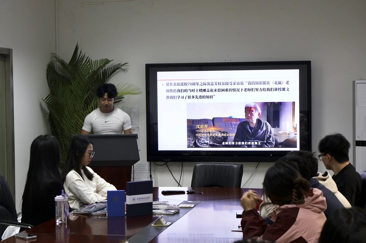 下午15:00,于清华大学水利水电科学楼会议室开展联学座谈会。从北航先锋事迹到感动中国人物,大家热烈讨论、畅所欲言,仿佛见证了一幕幕奋斗与奉献的感人画面。在关于“员工党员如何在强国建设中发挥先锋模范作用”的讨论中,大家思维碰撞,观点交融,不仅深入理解了党员责任,也感受到肩上的历史使命。