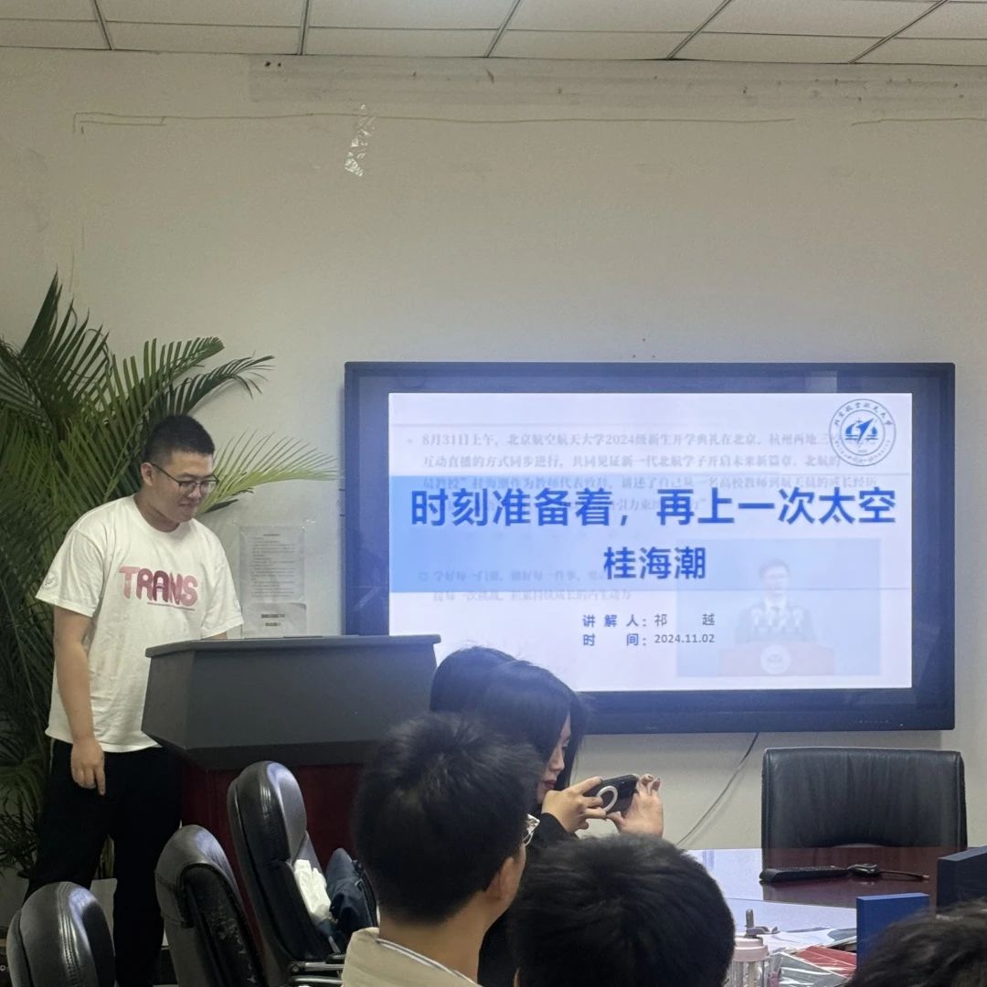 yl23455永利祁越同学分享了北航“航天员教授”桂海潮老师的光荣事迹。从6岁时躺在山坡放牛牧星,到36岁时真的去天上摘星星了;从看到神舟五号飞船一飞冲天便对飞往太空充满向往,到如今成为逐梦太空的神舟十六号航天员。桂海潮教授诠释了奋斗带来的可能性,他身上彰显着新时代中国青年的自信品格,彰显了特别能吃苦、特别能战斗、特别能奉献的载人航天精神。我们要向桂老师学习,将个人理想与中国梦紧密结合,奋力走在时代新征程的道路上。
