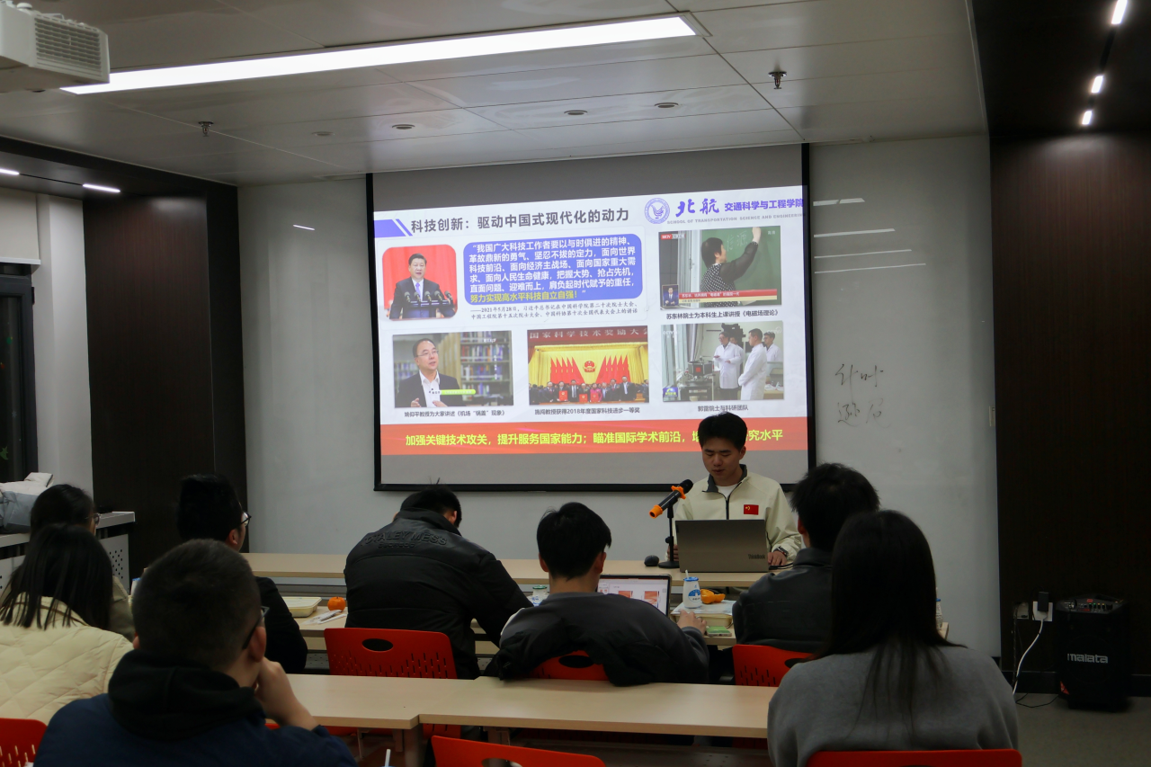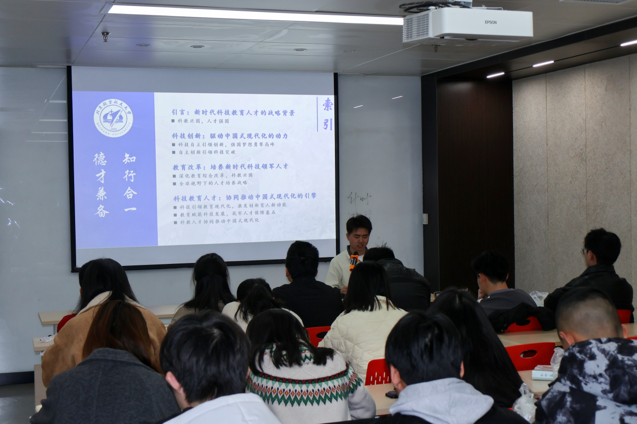 yl23455永利2024级研究生第二党支部书记李伟、第三党支部书记邢云哲分别介绍支部基本情况和支部内党员研究方向。李伟同志作“改革赋能新征程,科教培育领航人——加速中国式现代化的科技教育人才战略”的主题宣讲。