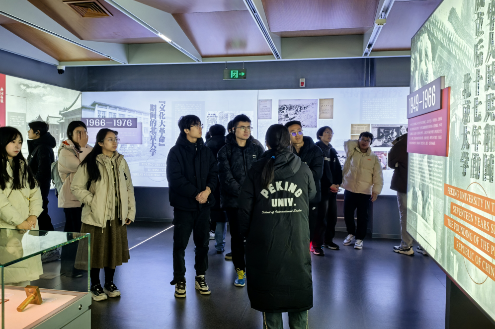 随后,全体成员前往参观北大校史馆,感受北大深厚的文化底蕴和学术氛围。北大校史馆以“爱国、进步、民主、科学”的光荣革命传统、“勤奋、严谨、求实、创新”的优良学风及“思想自由,兼容并包”的学术精神为主线,将北大百年发展历程分为九个阶段依次展示。
