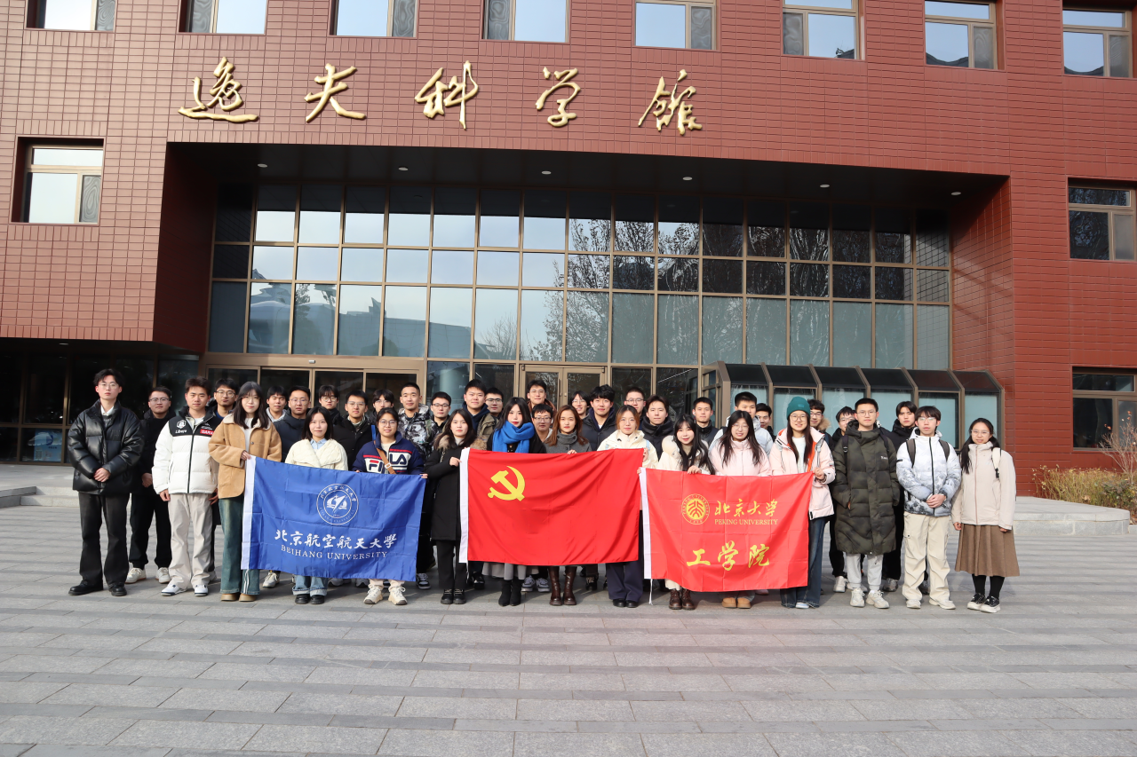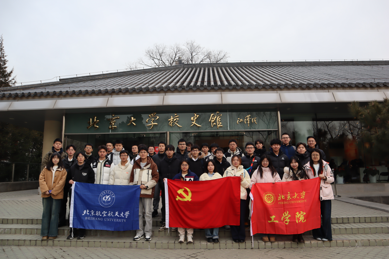 首先两校同学前往参观北航校史馆,深入了解北航的发展历程和科研成果。走进校史馆,迎面而来的便是"空天报国"主题雕塑,以庄严的姿态彰显着北航人的精神追求。校史馆内部丰富的图片和实物展品以空天报国精神为主线,生动地再现了北航七十载的辉煌历程。