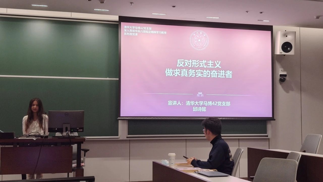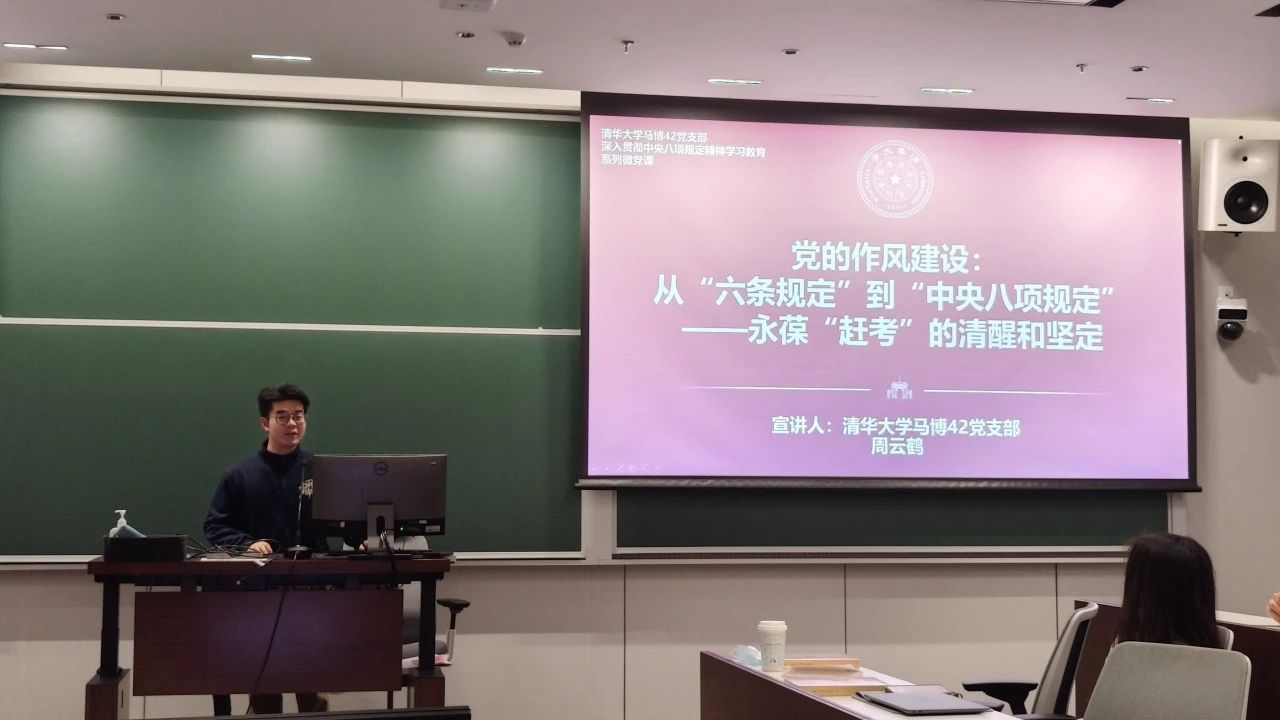 为开展深入贯彻中央八项规定精神学习教育,清华大学马克思主义公司马博42党支部书记、理论报告团讲师周云鹤带来专题讲座《从西柏坡“六条规定”到党的作风建设》,结合百年党史深入阐述作风建设对青年党员成长成才的重要意义。讲师邱诗懿则以《做求真务实的奋进者》为题,引导与会党员坚守初心、追求真理,在科研一线书写青春答卷。yl23455永利国重支部副书记王乐宁分享了支部在推动“党建+科研”融合方面的实践经验,特别是如何发挥党建导航灯、科研实践场作用,通过支部建设激发青年科技人才的凝聚力与战斗力,真正汇聚起青年创新力量的思考与做法。