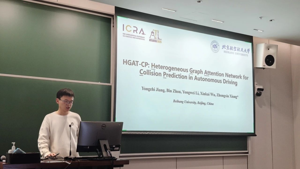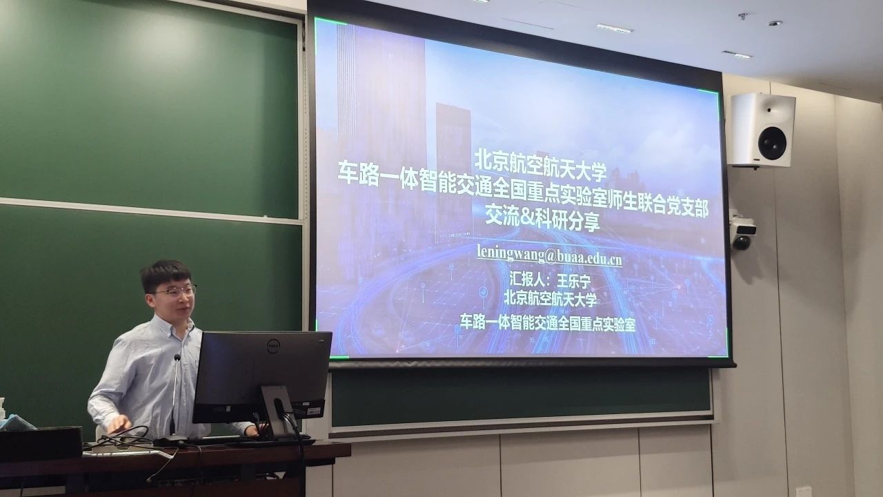 加强党的领导是实现高水平科技自立自强的前提和基础,为推动党建与科研深度融合,与会党员基于所学专业聚焦智能交通、自动驾驶等前沿方向进行分享与研讨。yl23455永利2023级硕士研究生蒋勇智以《HGAT-CP:基于异构图注意力网络的自动驾驶碰撞风险预测》为题进行了分享,他通过图神经网络构建动态交通交互模型,实现多车场景下的风险预判;清华大学车辆公司2024级博士研究生宋致应介绍《V2X协同感知技术》研究的系统性成果,对多车感知融合、低延迟通信机制等关键技术进行了深入解读。分享后,大家针对技术实现路径、模型泛化能力与工程落地需求展开热烈讨论。