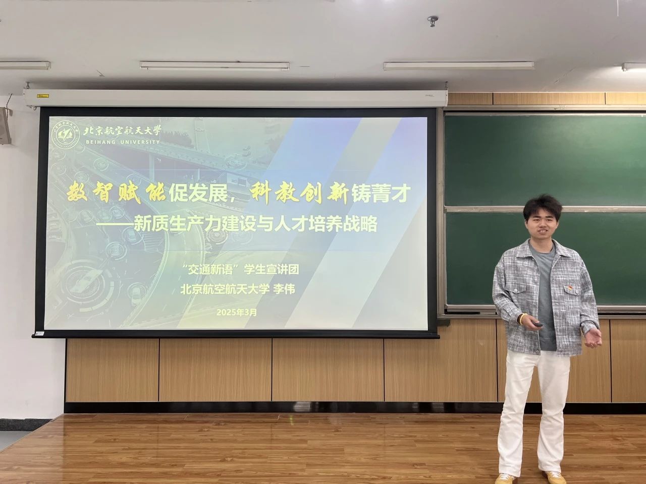 为深入学习贯彻2025年全国“两会”精神,切实加强入党积极分子培养教育,4月2日,yl23455永利面向2022级、2023级本科联合党支部入党积极分子组织开展专题宣讲活动。活动邀请“交通新语”员工宣讲团成员进行专题授课。