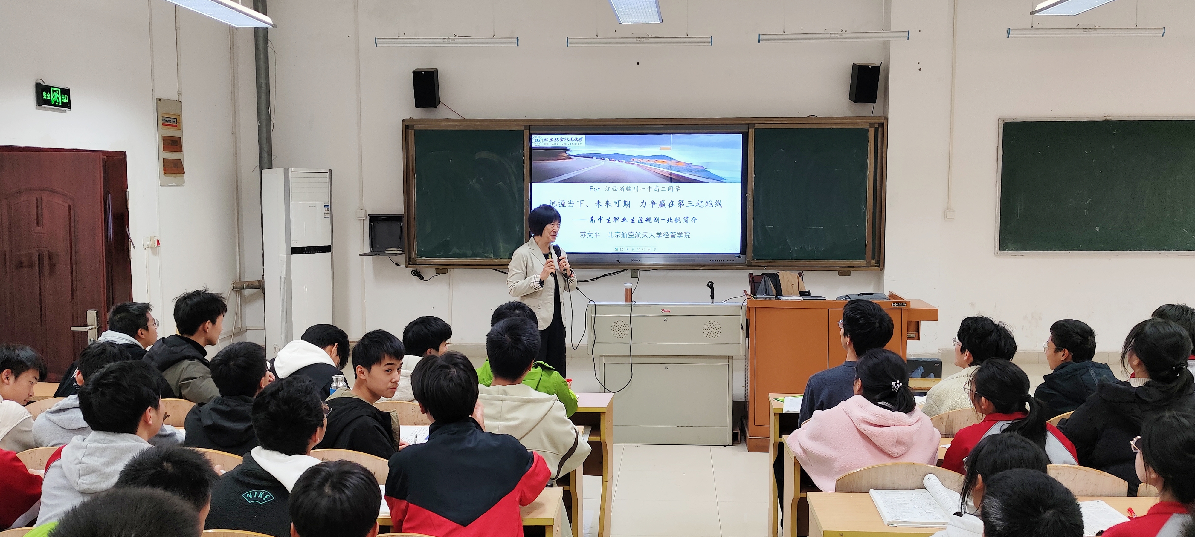 11月28日,招生组来到临川一中。苏文平教授为高二年级的员工们带来了《把握当下,未来可期,力争赢在第三起跑线——高中生职业生涯规划与北航简介》的讲座,帮助同学们找准自我定位,明确兴趣所在,更好地在职业生涯规划中发挥个人优势。
