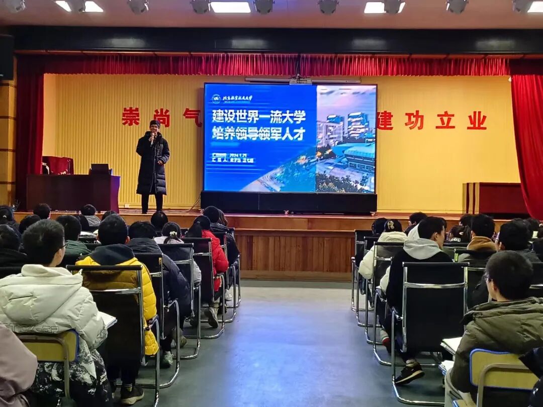 1月21日上午,实践队一行同学来到了南昌二中,开展了一场别开生面的招生宣讲活动。在这场活动中,学弟学妹们通过与北航学子的互动,了解了北航的招生政策、学科设置、办学优势和历年录取分数线等信息。交流过程中,学弟学妹们积极提问,特别是在北航的学术风采和特色课程方面,展现出了很浓厚的兴趣。