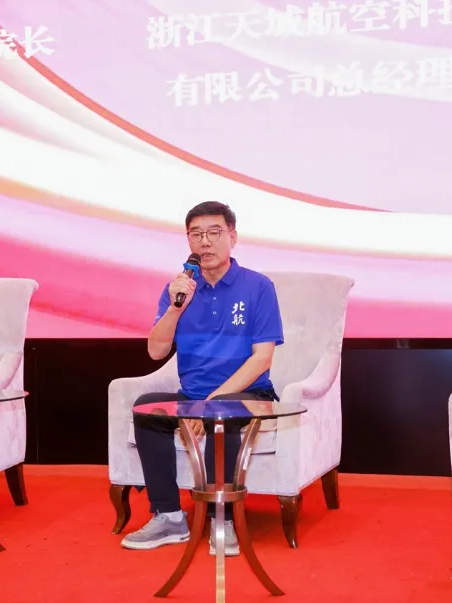 郎耀明(浙江天域航空科技有限公司总经理)分享创业心得,坦言创业虽艰难,但凭借北航人的技术自信与坚持精神,企业实现快速成长。他寄语同学:“真心实意、沉心技术、贴合政策,是北航人创业的成功路径。”