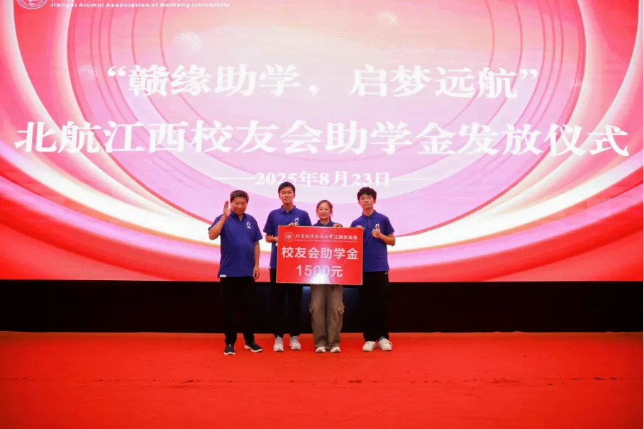 北航江西员工会举行助学金发放仪式,资助四位家庭经济困难、品学兼优的北航新生,助力他们顺利开启大学新程。朱俊书记为受助员工颁发助学金。来自吉安一中的优秀学子吴俊杰发言表示,助学金不仅是物质支持,更是来自北航大家庭的温暖。他郑重承诺,将努力奋斗、踏实前行,不负员工会的帮助、父母的期待与时代的机遇。
