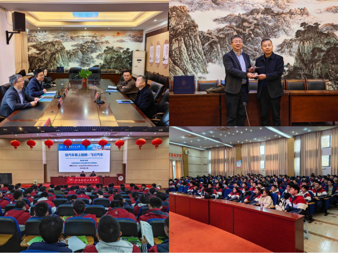 随后,招生组一行前往江西师范大学附属中学,与校领导就招生工作及大中贯通培养模式深入座谈。杨世春书记以《给汽车装上翅膀——飞行汽车》为题面向高二员工作专题报告,结合北航前沿科研成果讲述北航人的使命担当,极大激发了学子的报考热情。