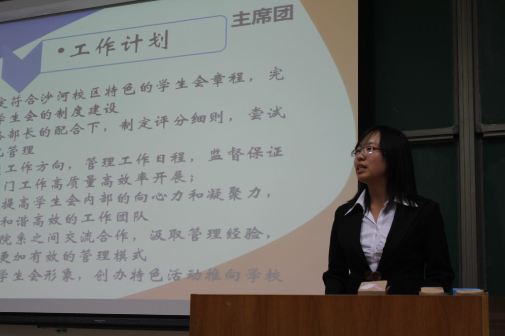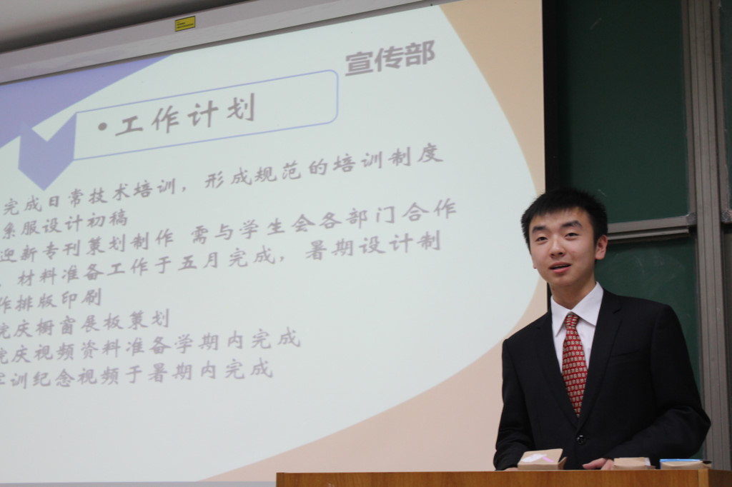 首先,前任员工会部长们在述职报告中对自己的工作做了简单的总结,并对新一届就职干部提出了殷切期望。随后新任部长发表自己的就职演讲。对接下来的工作做了具体的规划,并就本部门今后的发展提出了自己的要求。他们以极高的热忱,申明了坚持为同学服务的宗旨,努力把员工会建设成真正的为同学们服务的平台。会议最后,新成立的新闻中心和社会实践部进行了招新工作。在同学们的积极报名中,员工会换届大会宣告结束。